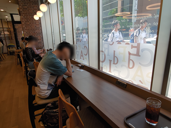 そんな中でこのドトールは景色良し、電源席多し、ということでかなり貴重な店です。