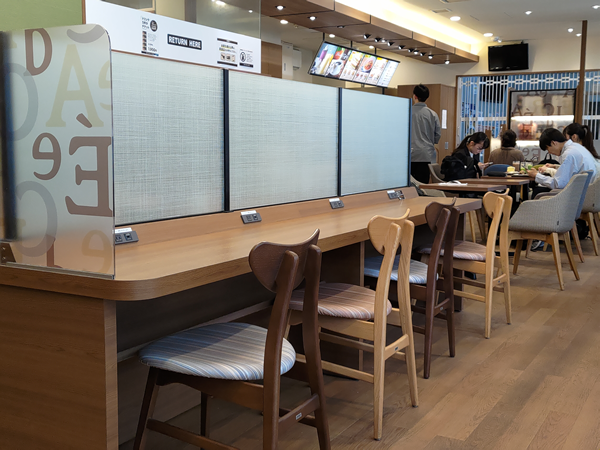 こちらもほぼ全席に電源、そして無料Wi-Fi完備です。