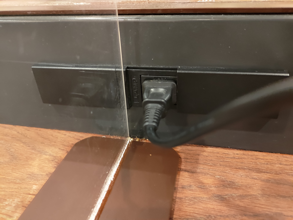 このように、黒い蓋を横にずらすと電源が出てきます。