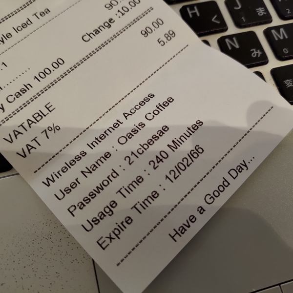 なお、無料Wi-Fiはレシートにログイン情報が記載されています。