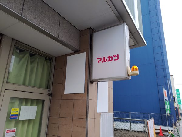 マルカツ停電による・・・はい、出ました。はっきりと停電と書かれています。他の張り紙にも停電のことがチラホラと書かれているのですが、これが一番はっきりと書かれていて好きです。復旧までの間と書いてありますが、経営者が逮捕されている以上、このまま閉店⇒解体となるのは必至でしょう。