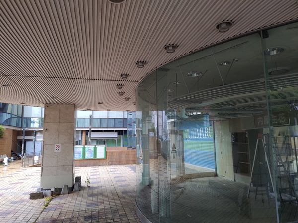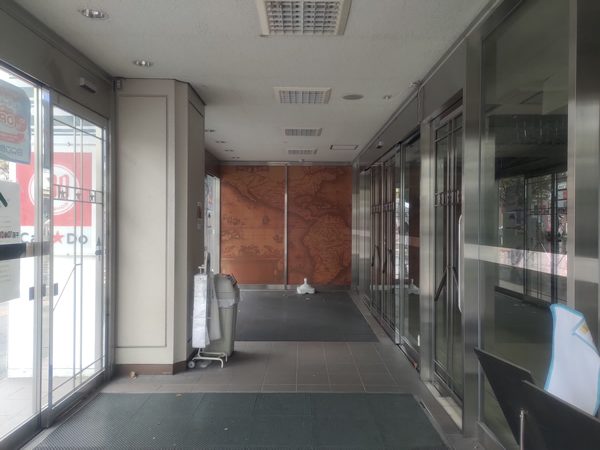 「移転」や「臨時閉所」「臨時閉庁」などなど、入居していたテナントが続々と出て行ったことを知らせる告知ばかりです。そして極めつけとも思えるのが、左下にある赤い張り紙です。