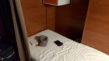 それぞれのドミトリーはカーテンで仕切られています。ドミトリー同士は木の壁でも仕切られているので、プライバシーは十分です。写真左側は棚になっているので、モノを置いたりしても良さそうです。