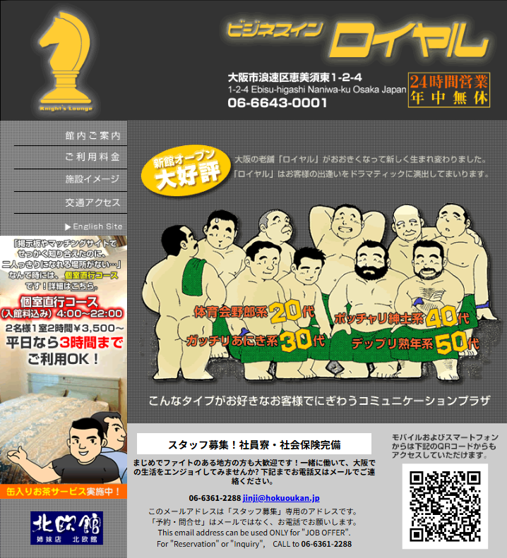 ちなみに、アーカイブ保存されている「英都」の公式サイトを見ると、サウナや大浴場、そしてご休憩の料金プランやペアルームなんかもあるので、ハッテン場としての機能をすべて備えていた模様です。